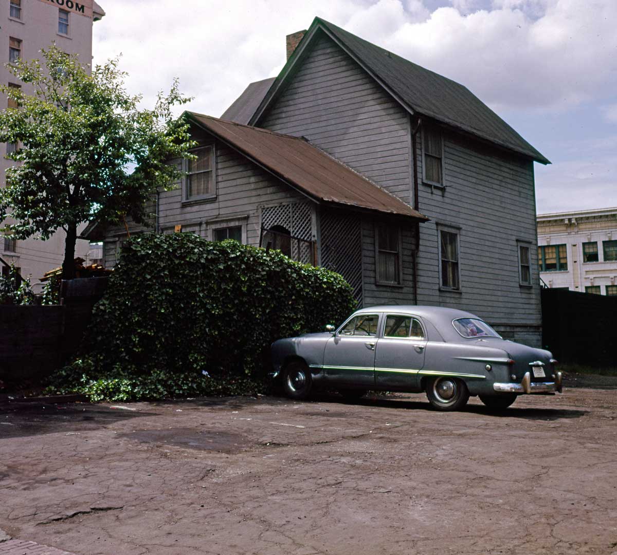1. FS-Old-House-twixt-PIKE-&-PINE-on-7th,-June-30,-1963-WEB November 2, 2013 1200 × 1080 1. FS-Old-House-twixt-PIKE-&-PINE-on-7th,-June-30,-1963-WEB Looking northwest from the parking behind the house, and with Shaw’s back approaching the rear facade of the Waldorf Hotel. (Frank Shaw)
