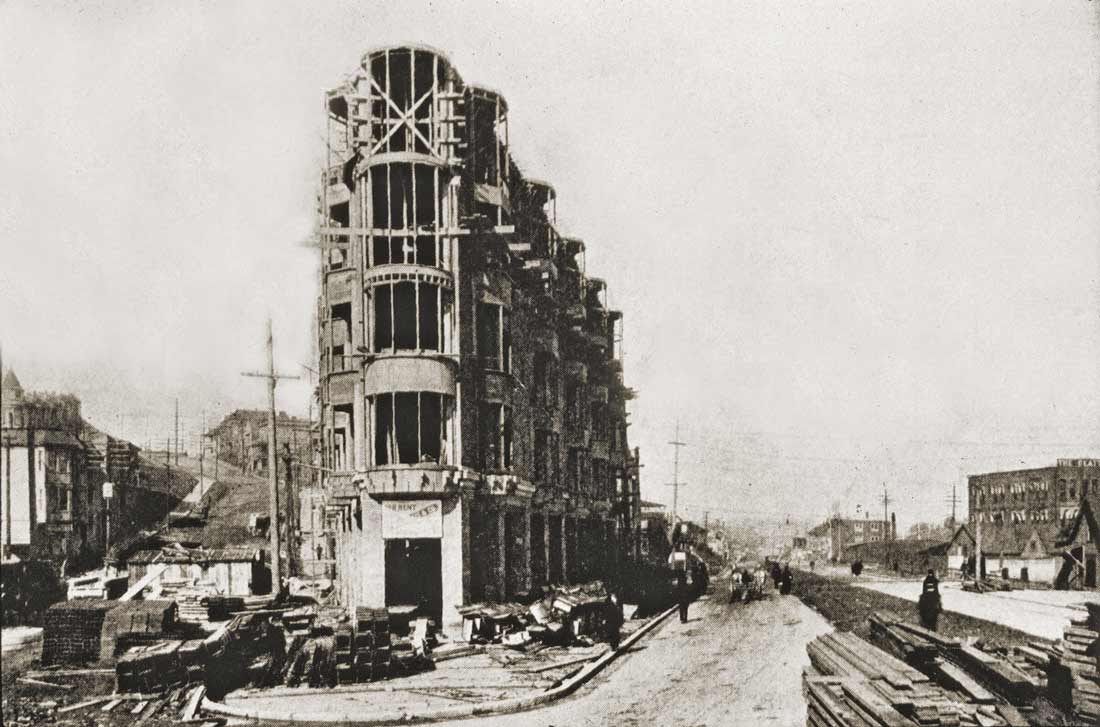 2- Westlake-building-c06WEB February 24, 2013 1100 × 727 2- Westlake-building-c06WEB Fourth Ave. on the left and Westlake on the right, in late 1906 after Westlake was cut through the city grid as far as Denny Way. The Plaza Hotel – later the triangular block for a one-story Bartells – is center-left.