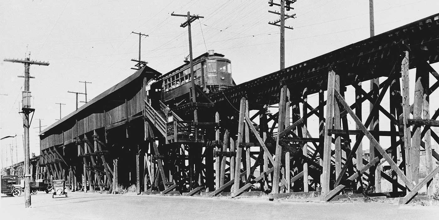 Although brand new, the elevated railway to West Seattle had a ride that swayed like a roller coaster. It was scrapped in 1929 – in time for the Great Depression. They had only ten years to remember, but the survivors of the dwindling set of West Seattle old timers still describe it as a white-knuckle thrill. Two of the better-known members of this species – Emmett Watson and Ivar Haglund – now long gone remembered the ride well. Typically, as West Seattle adolescents both were fascinated with how to get to Seattle and equally thrilled by the trolley ride across the Duwamish waterway. In his book Digressions of a Native Son Watson recalls, “The way you got to First Ave. from West Seattle was by thumb or street car, those rattling old orange things. They clanked and swayed over an incredible old wooden trestle, high above Spokane Street, weaving and shaking until you had to close your eyes to keep from getting a headache.” Similarly Ivar recollects, “Some of my earliest memories are of taking the West Seattle ferry to Seattle, a ride that while thrilling was not so thrilling as that aboard the trolley. It was our rollercoaster. That thing would throw us from side to side as it stumbled along a trestle that was high, narrow and, most of the way, without guardrails. It seemed like there was nothing between you and the ground but the roofs of the buildings below you. It was marvelously scary.”