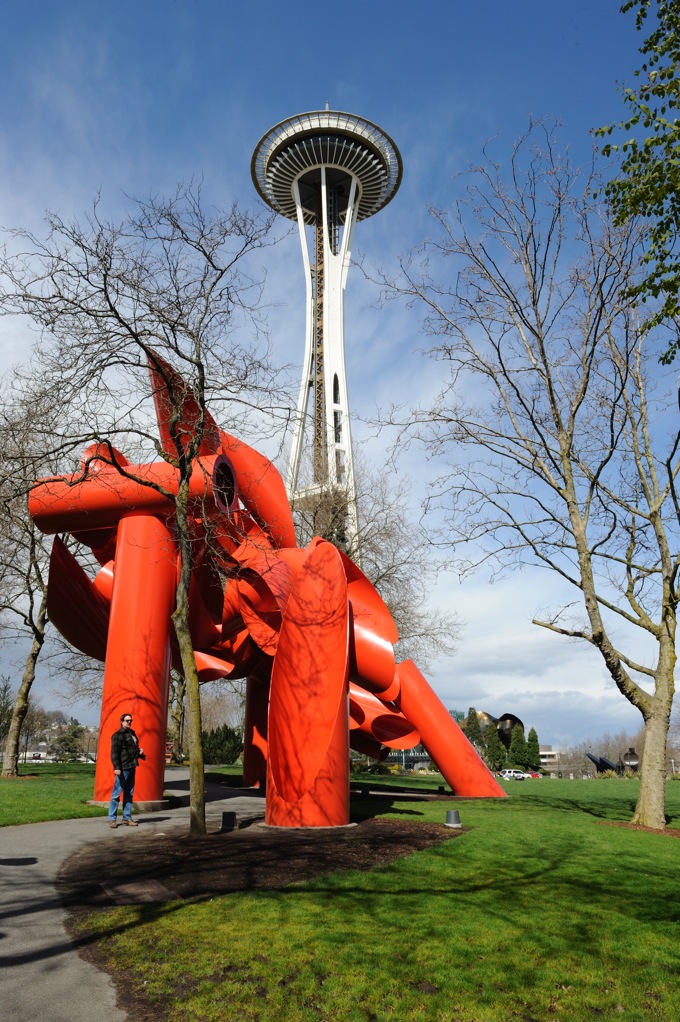 Postscript: Also posing Jean at 6’7″ next to the Calder and the Space Needle is misleading.