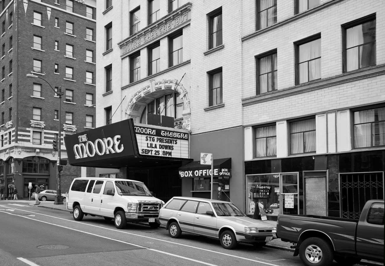 Now (that is, in 2003) but four years short of its centennial, the Moore Theater at Second Avenue and Virginia Street has run touring plays, vaudeville, opera, concert series, musicals, political rallies and lectures. Beginning in 1935 it became the venue for impresario Cecilia Schultz, one of Seattle’s cultural treasures, and in 1976 the Seattle International Film Festival got its start here.