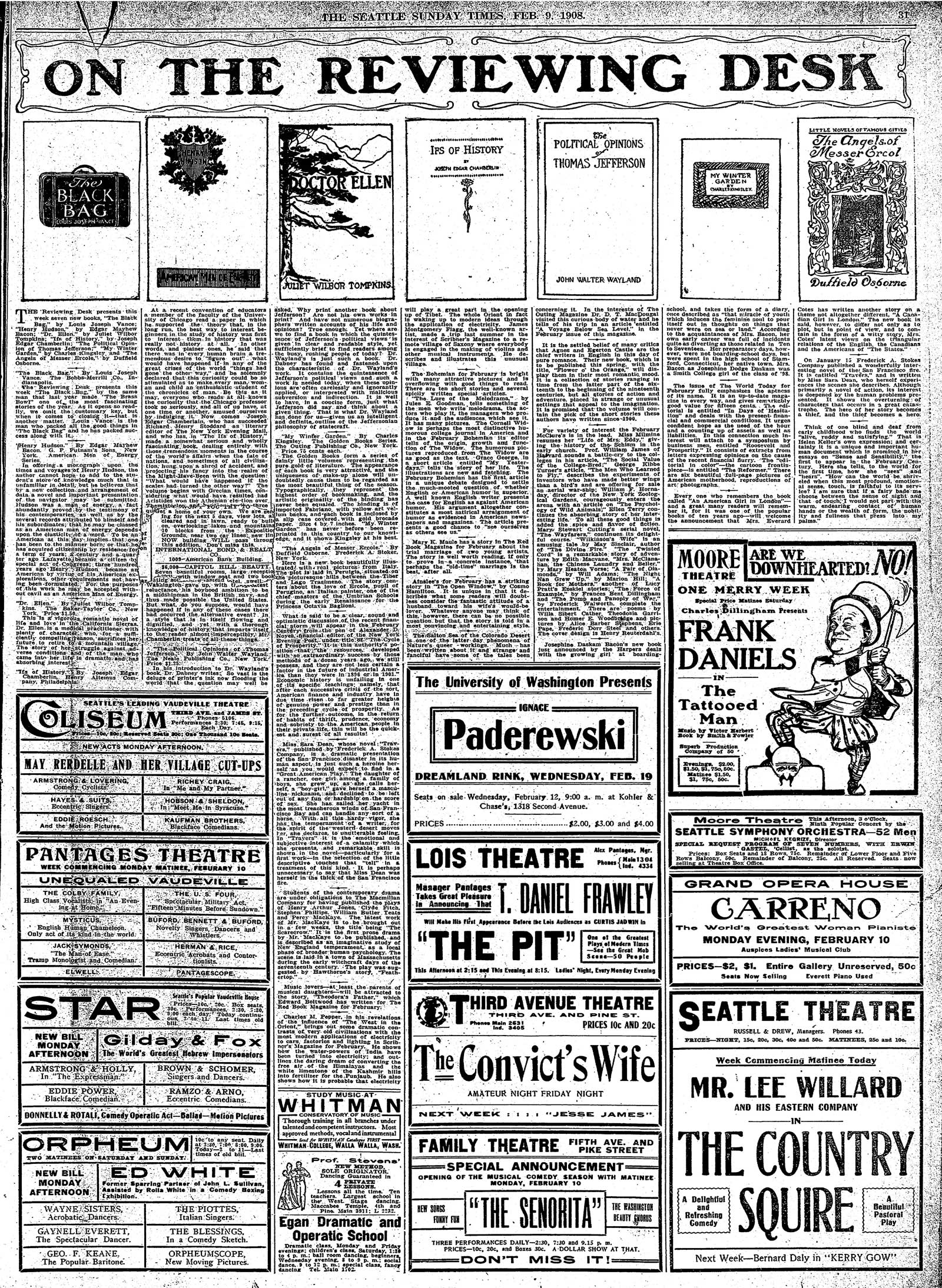 2, ST-2-9-1908-Dreamland-full-page-reviews-+-WEB March 9, 2014 1600 × 2189 Seattle Now & Then: Unitarian Drama Full-page from the Feb. 9, 1908 Seattle Times, featuring some book reviews of the time, as well as
