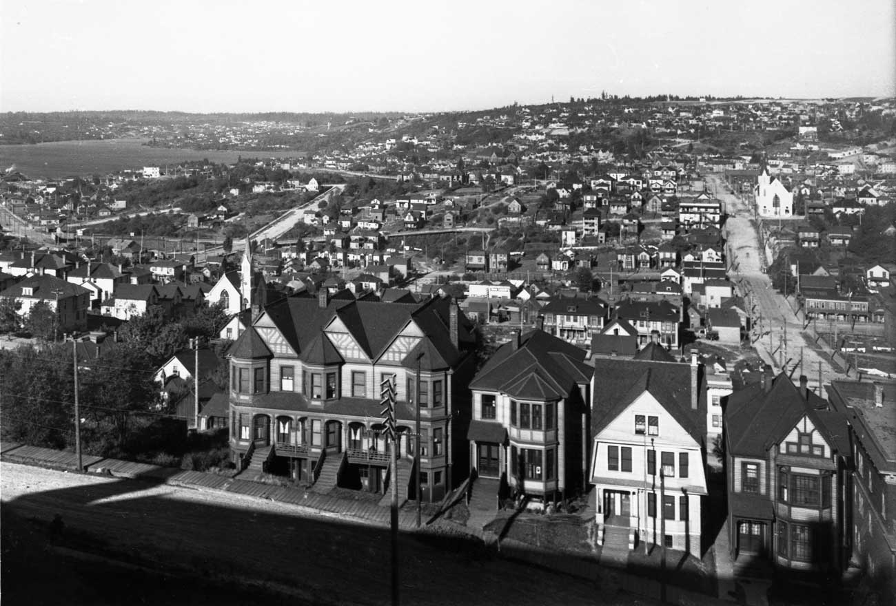 Lk-Union-Pan-fm-Denny-Hotel-Curtis-left-sideWEB April 20, 2014 1300 × 880 Seattle Now & Then: A Shoebox on Fifth Wallngford is far off on the north side of Lake Union, here on the far left horizon. Stewart street is on the right, and Fourth Avenue at the base of this A. Curtis photograph from ca. 1904. Capitol Hill covers most of the horizon.