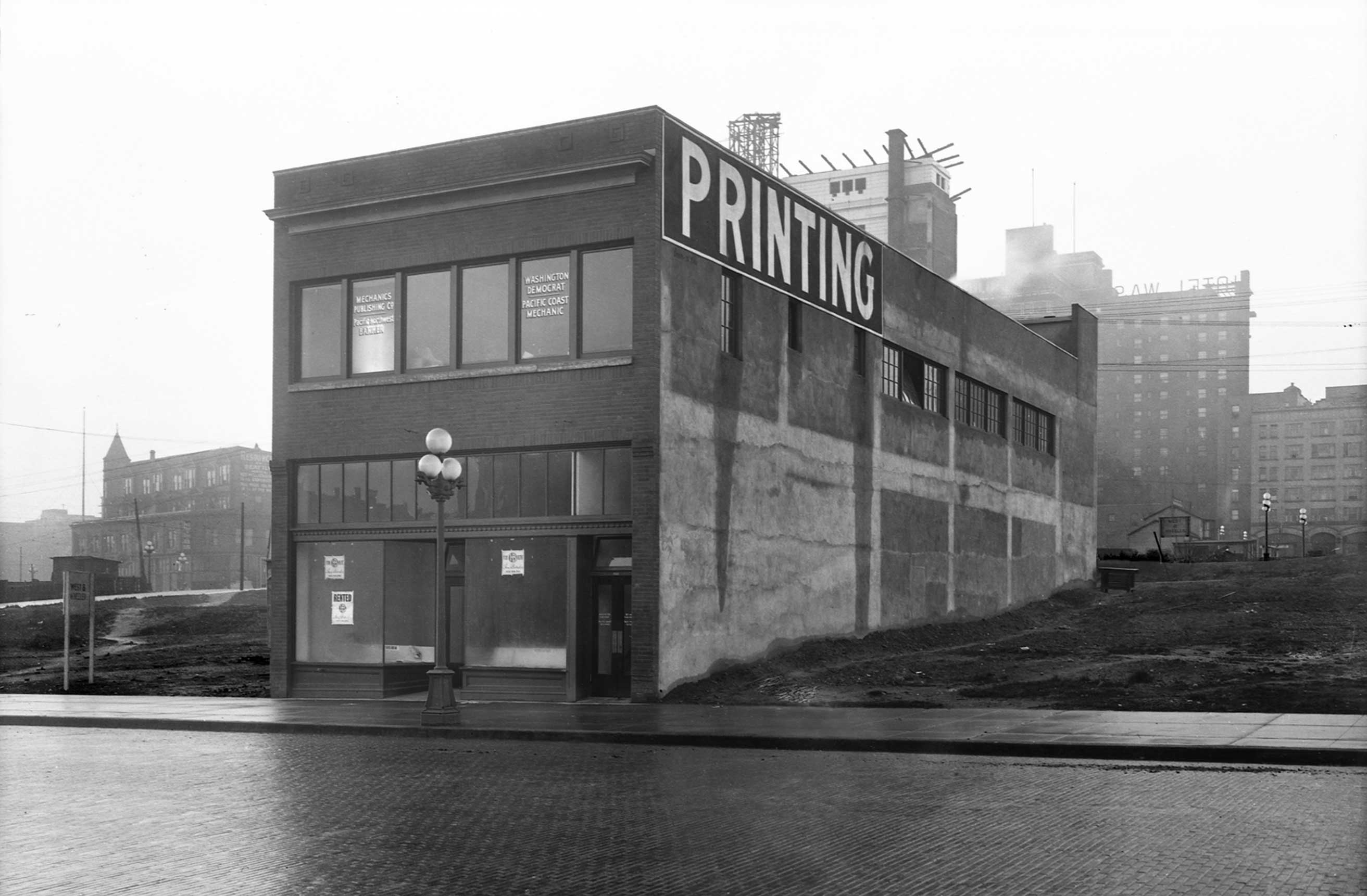 SHOEBOX-on-5th-mr-THEN April 19, 2014 2625 × 1722 Seattle Now & Then: A Shoebox on Fifth THEN: Thanks again and again to Lawton Gowey for another contribution to this feature, this ca. 1917 look into a fresh Denny Regrade and nearly new “office-factory” at 1921 Fifth Avenue. (Courtesy, Lawton Gowey.)