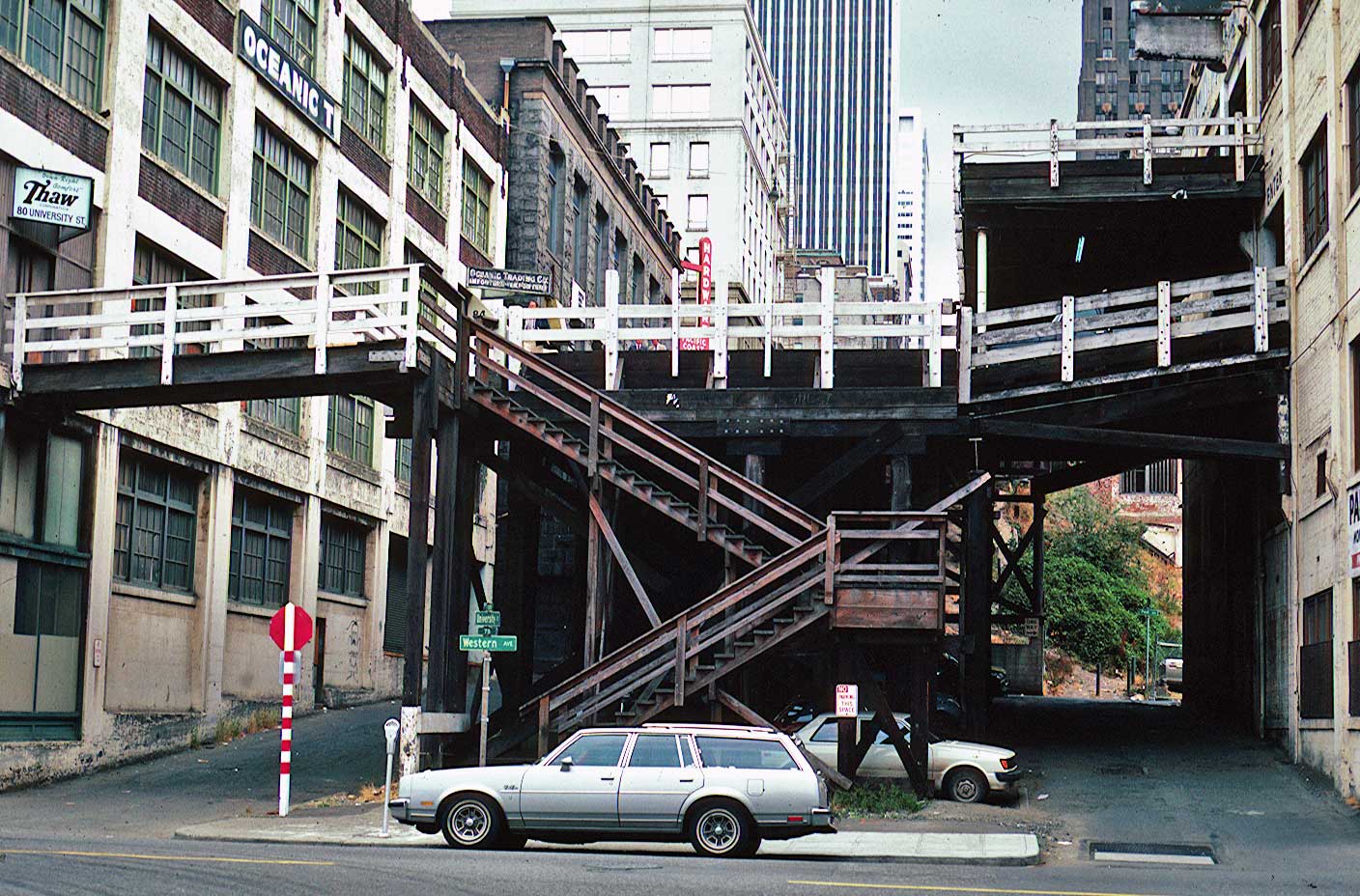 B.-University-&-Post-&-Ramp-cutoff1982web April 27, 2014 1408 × 928 Seattle Now & Then: Post Office Teams on University Street Lawton Gowey’s up-close portrait of the viaduct’s stub, again looking east across Western Avenue, this time in 1982.
