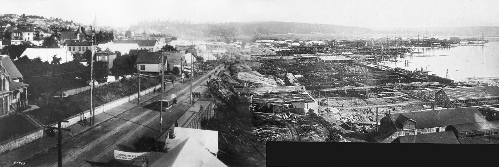 Z-fire-ruins-pan-fm-above-union-st1 April 27, 2014 1600 × 536 Seattle Now & Then: Post Office Teams on University Street The swath of destruction along the waterfront seen from the northwest corner of Front Street (First Ave.) and Union Street.