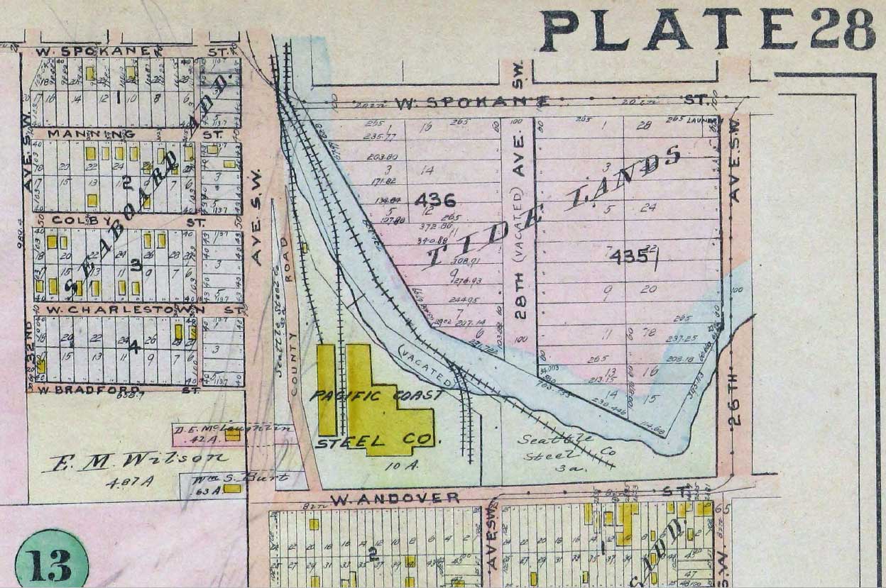 2.-Yougstown–1912-Baist-Map-GRAB-WEB June 29, 2014 1248 × 829 Seattle Now & Then: Spokane Street from West Seattle A detail from the 1912 Baist Real Estate Map with Spokane Street at the top and the Youngstown neighborhood at the bottom and south of Andover Street.