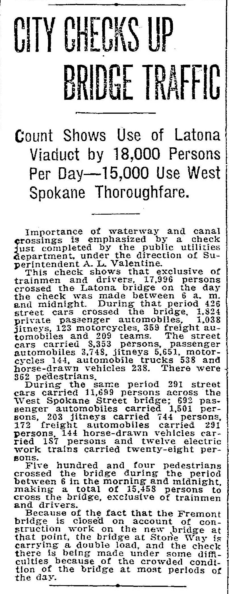 5.-ST-Nov.6,-1915–Traffic-Bridge-pole-WEB June 29, 2014 805 × 2084 Seattle Now & Then: Spokane Street from West Seattle A Seattle Times report on the city’s study of bridge traffic, Nov. 6, 1915.