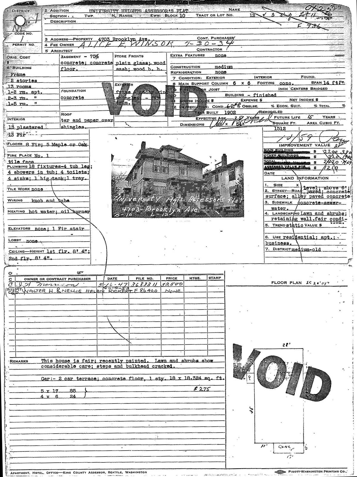 “Void” from some other but us dear reader. This is, of course, the tax card generated by the Works Progress Administration in the late 1930s for its inventory of every taxable property in King County. Many unregistered structures were found in the tax-enriching process. (Courtesy, Washington State Archive, Bellevue branch)
