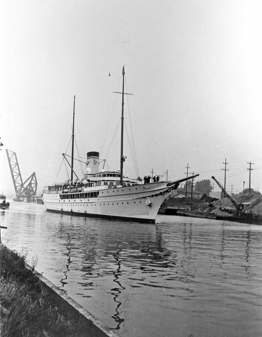 CANAL-large-yacht-in-Fremont-part-of-canal-heading-east,-maslanWEB August 10, 2014 900 × 1156 Seattle Now & Then: Salmon Bay Looking west up the canal past an unidentified vessel to the railroad’s 8th Avenue bridge, which was ordinarily open like the Great Northern bridge west of the Chittenden Locks.