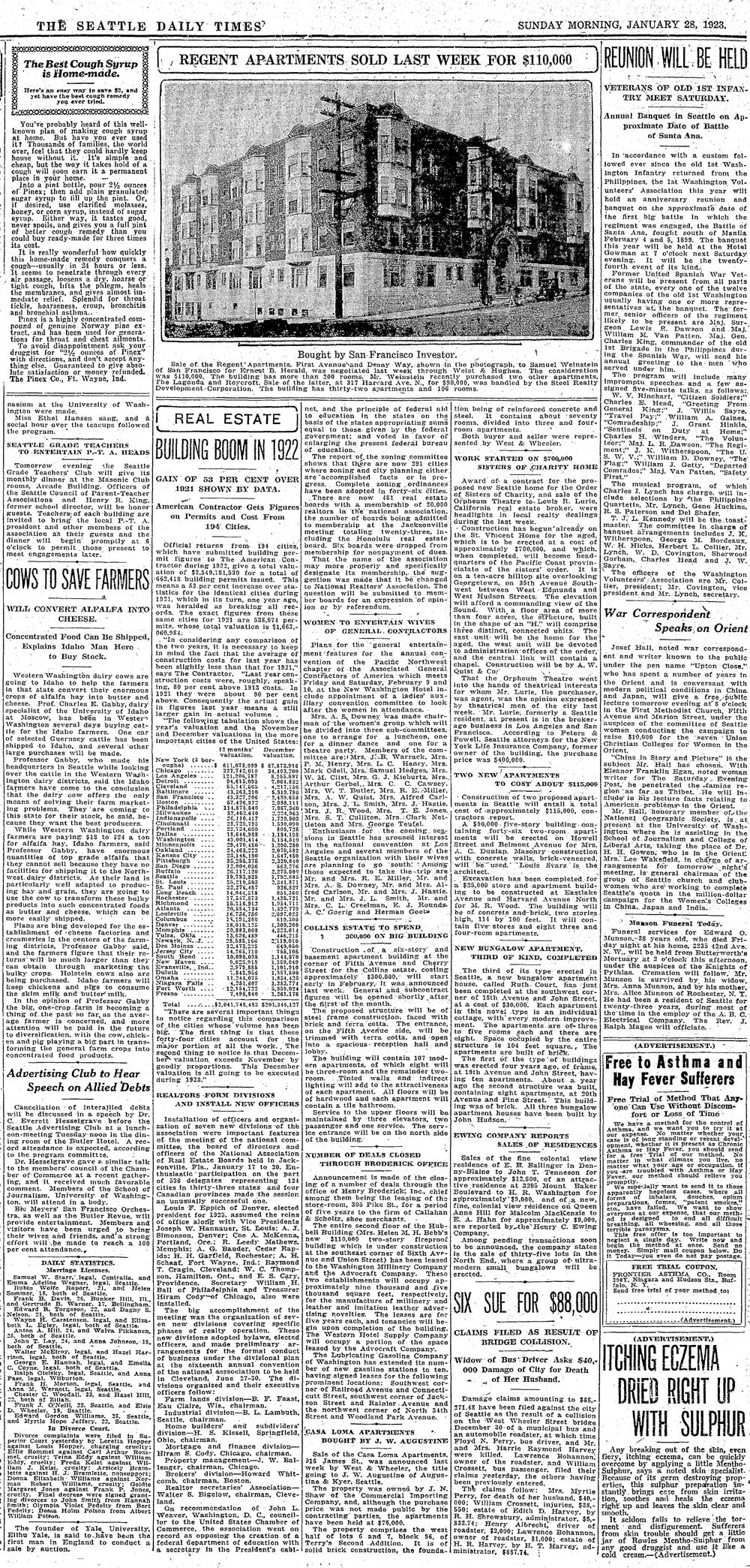 _ST-Jan-28,-1923-Sale-of-REgent-w.-PixWEB- August 17, 2014 1000 × 2089 Seattle Now & Then: The Arkona at First and Denny The 25-year-old Regent