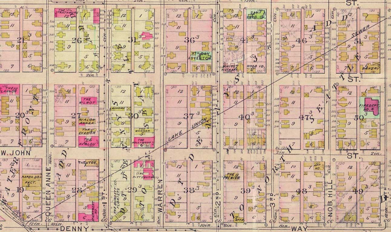 x Baist-Nof-Denny-GRABWeb August 17, 2014 1292 × 769 Seattle Now & Then: The Arkona at First and Denny This detail pulled from the 1912 Baist Real Estate Map has Denny Way running along the bottom.