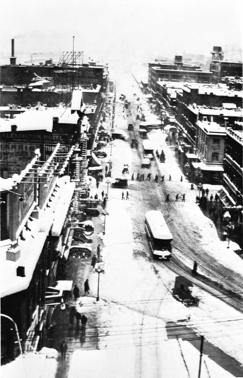 ext. –2nd-Ave.S-FM-smith-tower-1916-snow-WEB September 14, 2014 800 × 1241 Seattle Now & Then: Third Avenue South Second Avenue South from an office floor in the Smith Tower. Most likely this is a scene from the big snow of 1916. Second is still a dozen years from being cut through the buildings on the left.