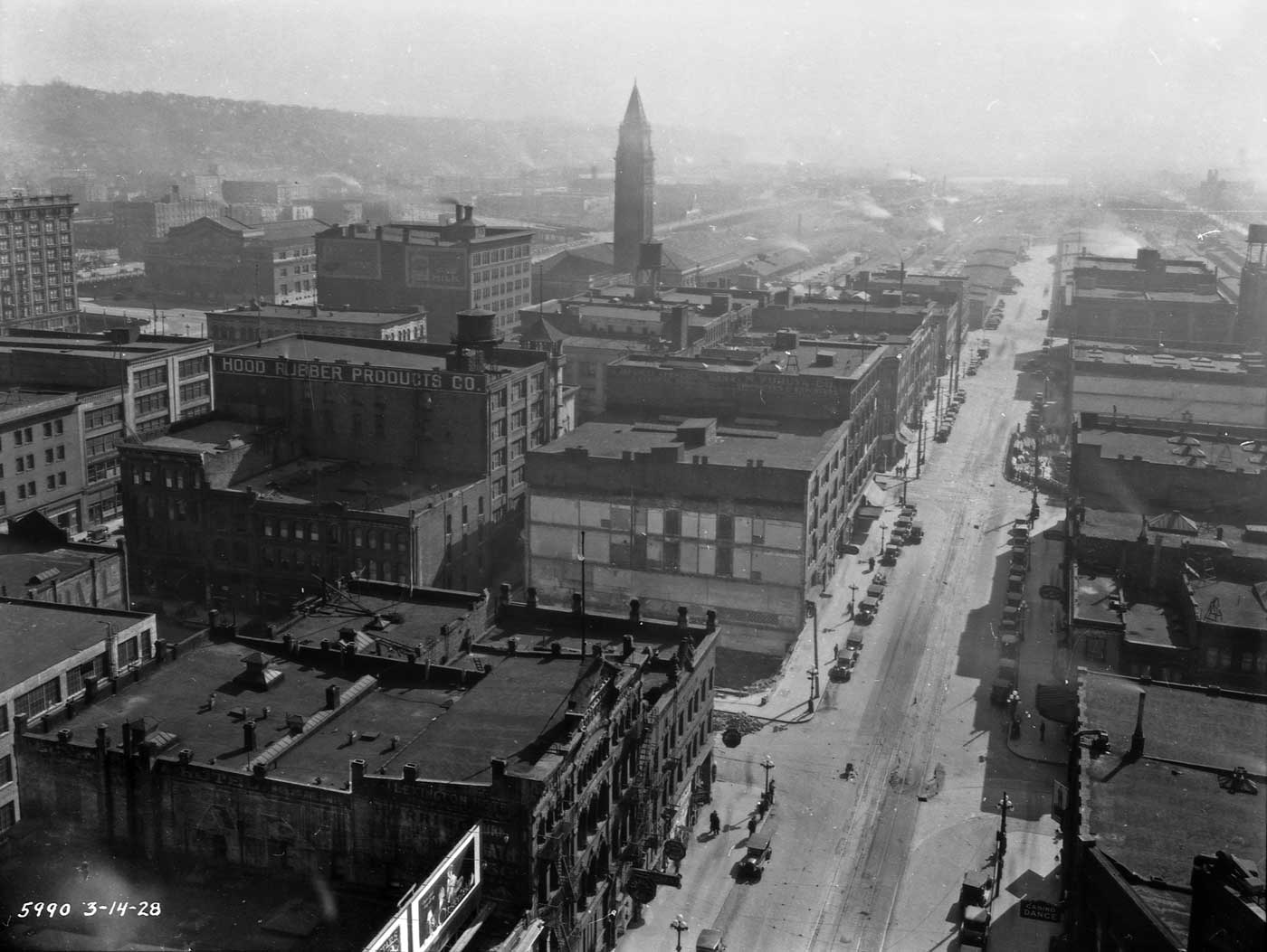 Ext. Second-Ave-Extension-March-14,-1928-WEB September 14, 2014 1400 × 1053 Seattle Now & Then: Third Avenue South From a higher floor in the Smith Tower, Second Avenue shows its first signs – with the bared wall at the center – of its being extended through the neighborhood. The Municipal Archive negative is date, bottom-left, March 14, 1928.
