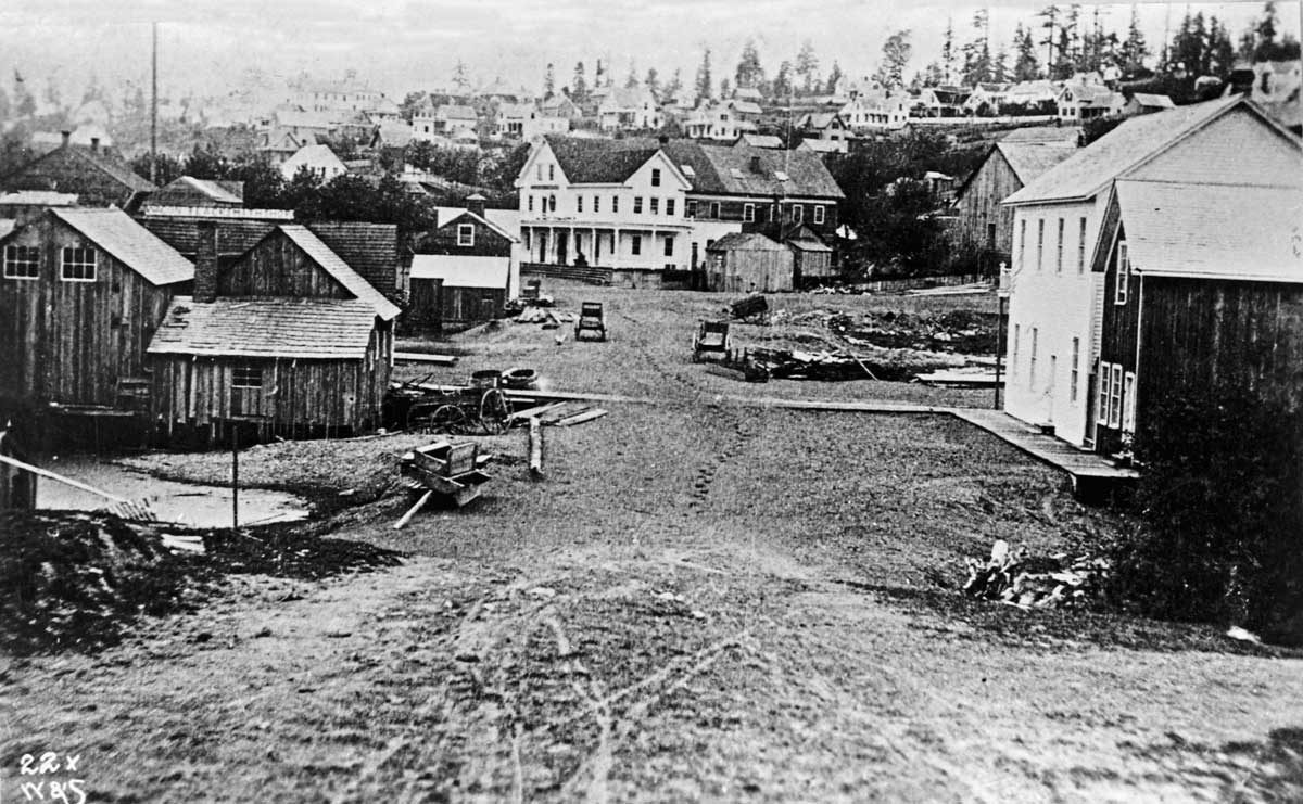 4, 1872-Occidental-fm-Main-THEN-WEB2 September 21, 2014 1200 × 741 Seattle Now & Then: The Occidental Hotel North on Occidental ca. 1872. In truth the avenue was then still named Second. Note the big puddle to the left. When the first settlers first arrived on this side of Ellliott Bay in 1852, this covered by the tides more often than not.