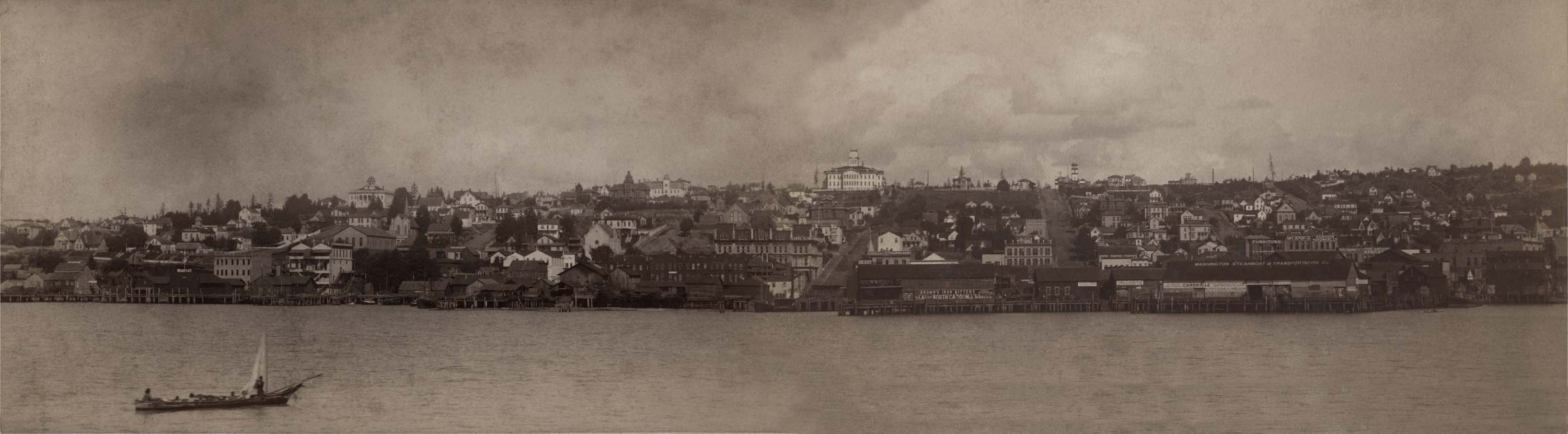 MOHAI images 377 & 3494 merged into panorama of Seattle c1887 Judkin’s Photos September 20, 2014 3000 × 831 Seattle Now & Then: The Occidental Hotel