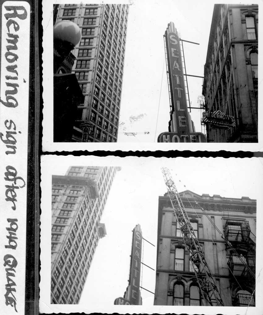 x-Seattle-Hotel-Sign-1949-duo September 21, 2014 850 × 1018 Seattle Now & Then: The Occidental Hotel Removing the hotel sign at the southwest corner of James Street and Second Avenue, following the earthquake of 1949.