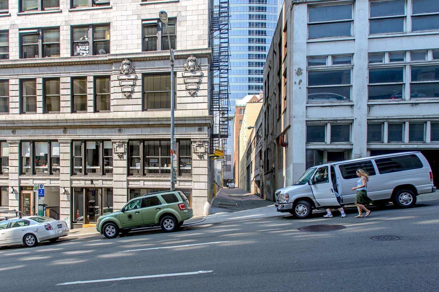 THIRD-AVE.-REGRADE-1907–MR-NOW October 11, 2014 1500 × 1000 Seattle Now & Then: Third Avenue Regrade NOW: Jean Sherrard moved a few yards east up Columbia Street from the unnamed historical photographer’s prospect in order to look north down the typical sixteen-foot wide central business district alley.