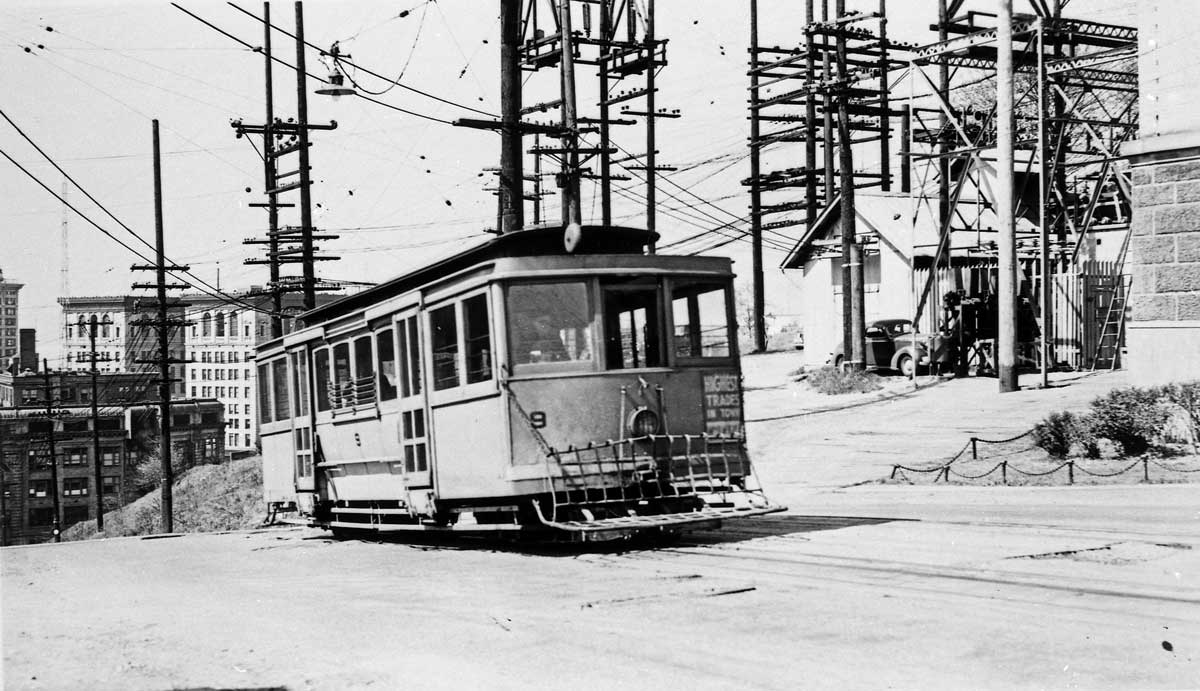 Yesler-Cable-climbing-hill-in-front-of-electrical-transformers-WEB November 2, 2014 1200 × 691 Seattle Now & Then: Comet becomes Star Near it last day, a Yesler Way Cable Car approaches Seventh Avenue on Yesler Way, now the eastern border of the 1-5 Freeway. The photograph was taken by a trolley and cable enthusiast in 1940. (Courtesy, Lawton Gowey)