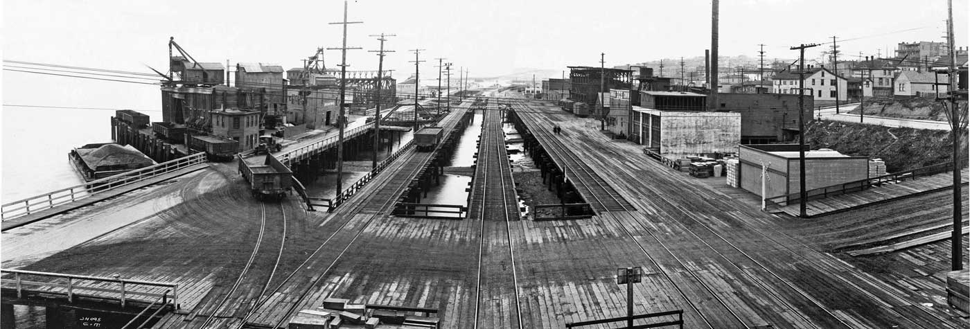 RR-Ave-pan-over-Wall-THEN-web November 23, 2014 1400 × 475 Seattle Now & Then: The Wall Street Pier Merged from two negatives, Railroad Avenue looking north over Wall Street.