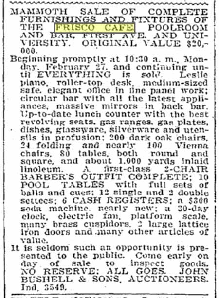 Frisco-Bar-at-First-and-University-sale-ST-feb.-25th,-1911-WEB December 7, 2014 450 × 613 Seattle Now & Then: Fourth and Pike This Times clipping from 1910 suggests that the Frisco Bar found a new home near First and University. The classified also offers up its bar furniture for sale, which is not a good sign.
