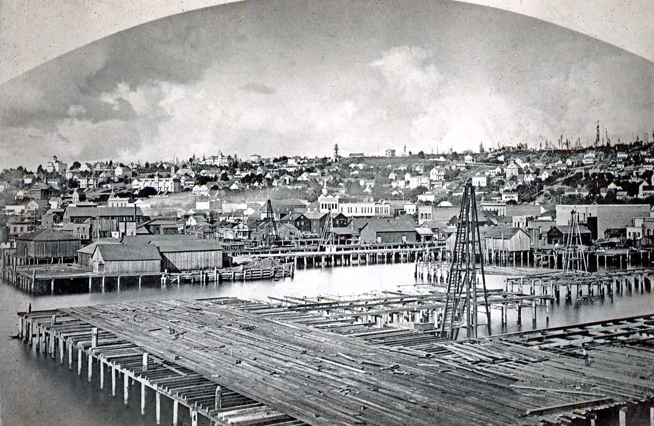 The Stetson-Post row is easily distinguished in this 1882 photo by Watkins about one-fourth of the way in (to the right) of the left border. Watkins took his panorama – this is but one part – from the King Street Coal Wharf. The new Ocean Dock is under construction in the foreground.