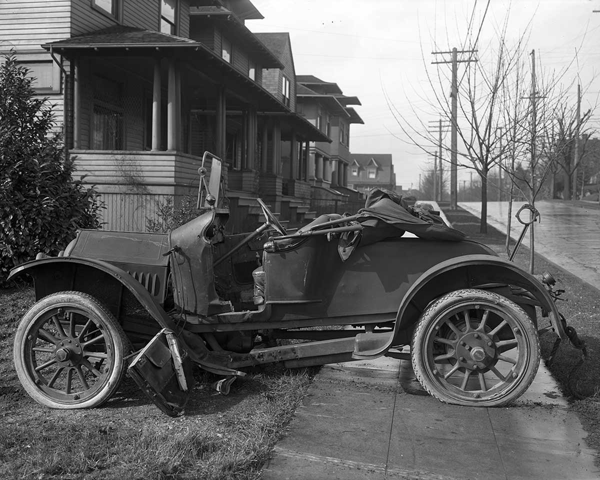 First-Hill—Wreck-2-web-WEB March 14, 2015 1200 × 961 Seattle Now & Then: The SINGULAR TRAFFIC TOWER at FOURTH and PIKE Hardly a statistic, it made it to the driveway – somewhere on First Hill, perhaps.