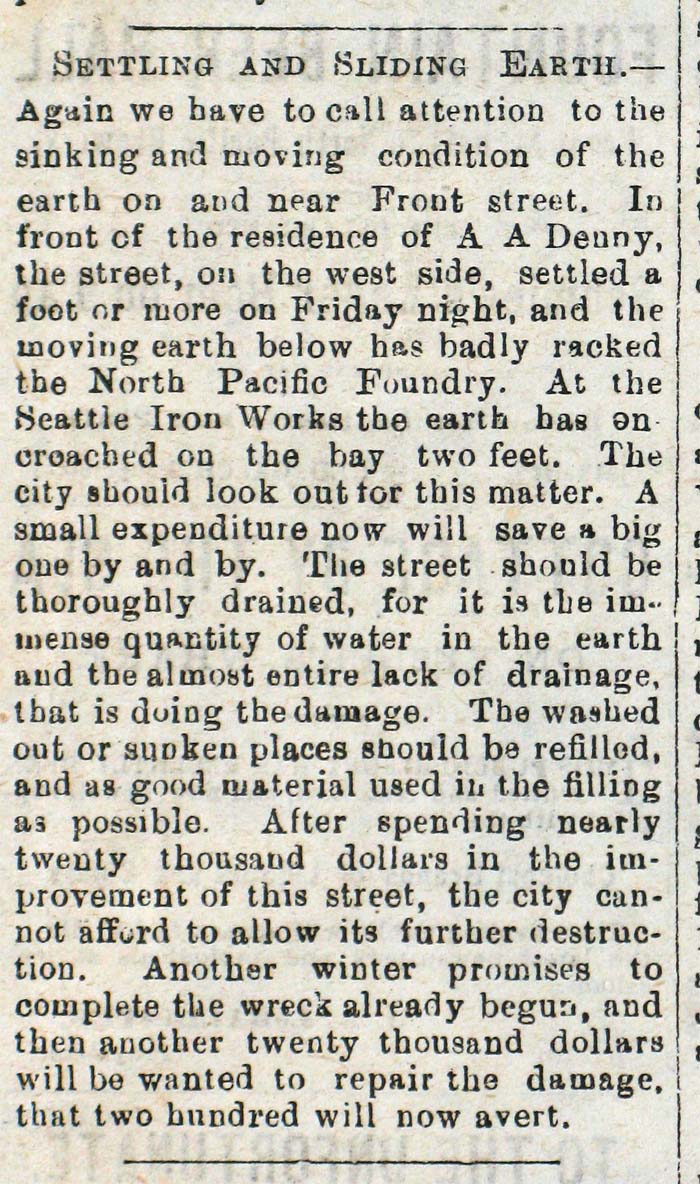 Front Street slides DIntel 1:18:80 April 25, 2015 700 × 1184 Seattle Now & Then: Seattle Fire Ruins Redux A Daily Intelligencer report on the condition of the same block published on January, 18, 1880. (Courtesy, Ron Edge)
