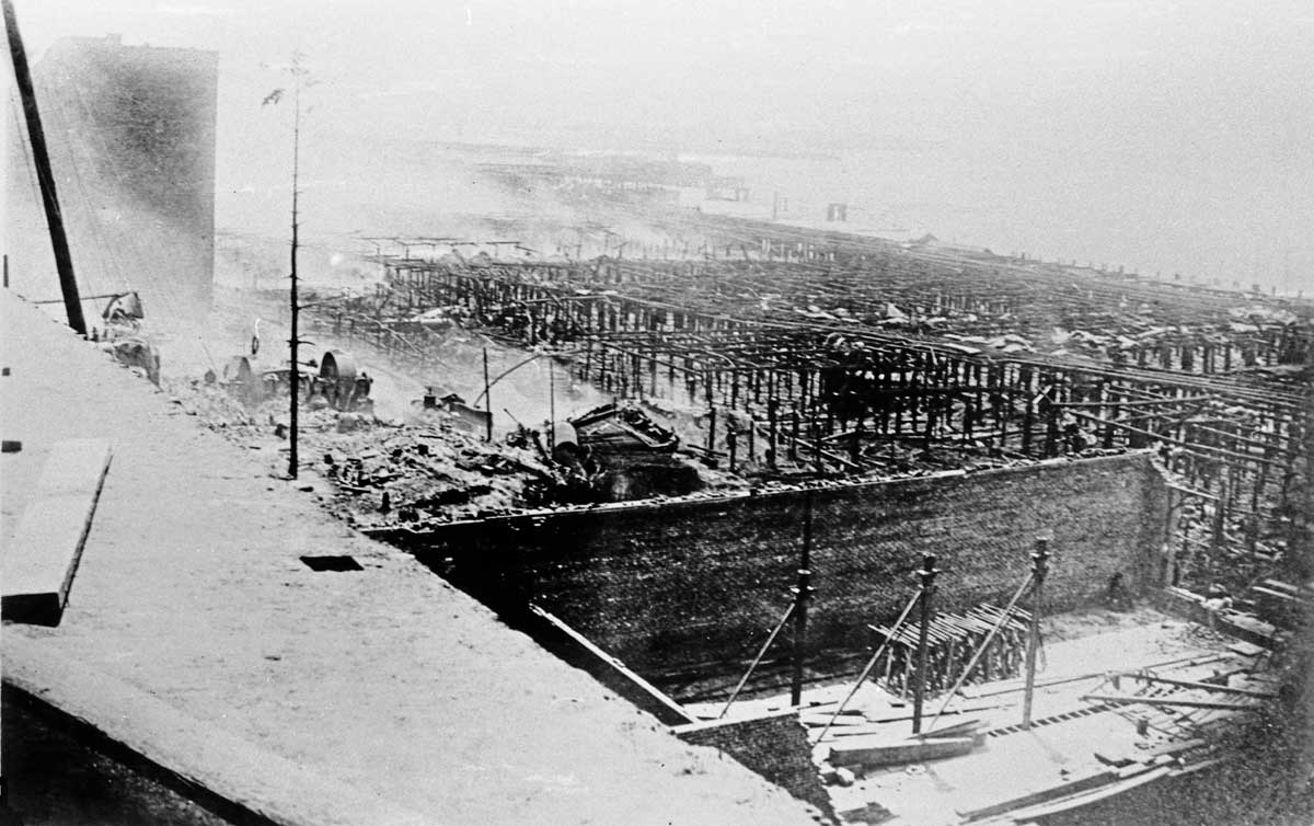 X.-Gilmore-aka-Arlington-Hotel–building-Front-and-University-south-facade-construction-after-1889-fire-WEB April 25, 2015 1200 × 754 Seattle Now & Then: Seattle Fire Ruins Redux Another look at the Gilmore Block’s fire-stopping foundation, looking south from the Front Street (First Ave.) boardwalk above it.