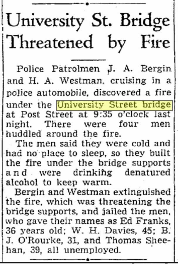 ST-May-11,-1938-clip-4-men-build–fire-under-Univeristy-Bridge-to-keep-warm-GRAB-WEB May 2, 2015 607 × 898 Seattle Now & Then: Steps to the Harbor A clip from The Seattle Times on May 11, 1938.