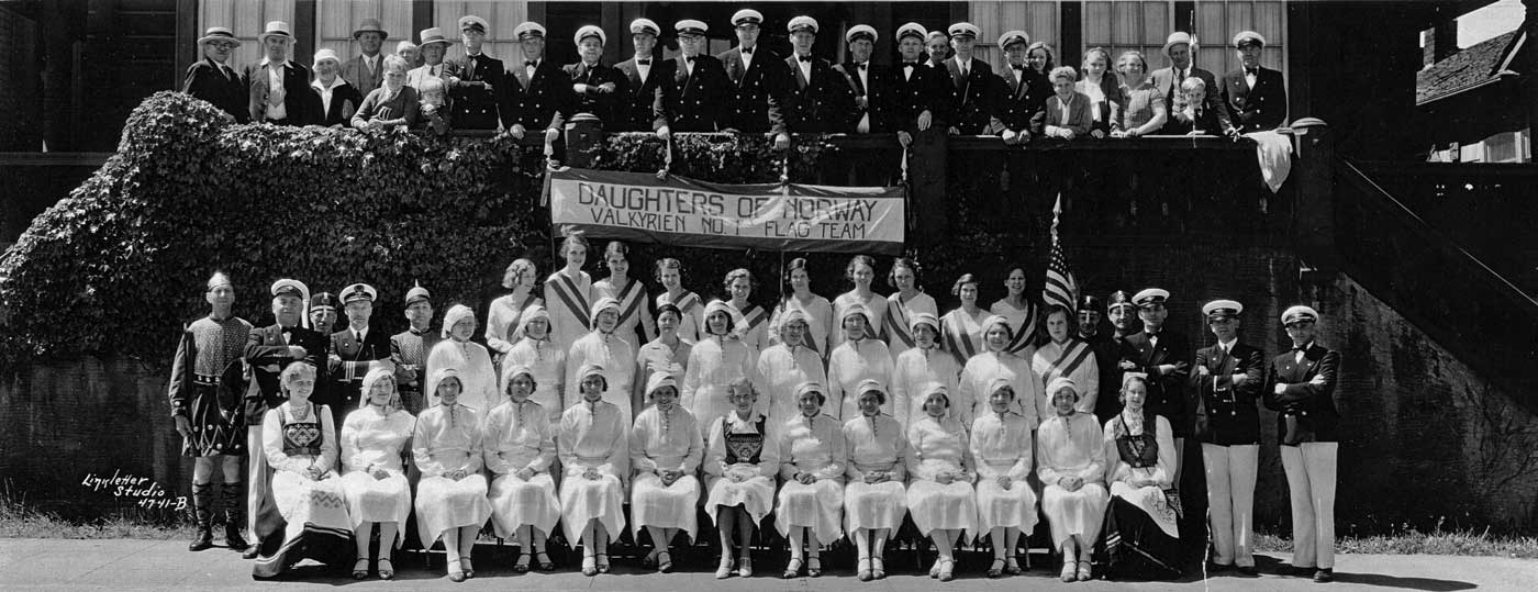 DAUGHTER-of-Norway-at-NORMWAY-HALL-WEB May 30, 2015 1400 × 539 Seattle Now & Then: Norway Hall Daughters of Norway at Norway all with some Sons or suitors in suits or uniforms.