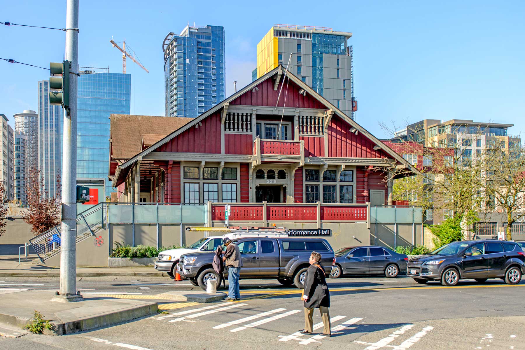 NOW: Since the Sons and Daughters moved on to larger clubhouses, their first Norway Hall has given shelter to the Painter’s Union and dance clubs, including the City Beat Disco in the 1980s and the Timberline in the 1990s, and now as Cornish School’s Raisbeck Hall.