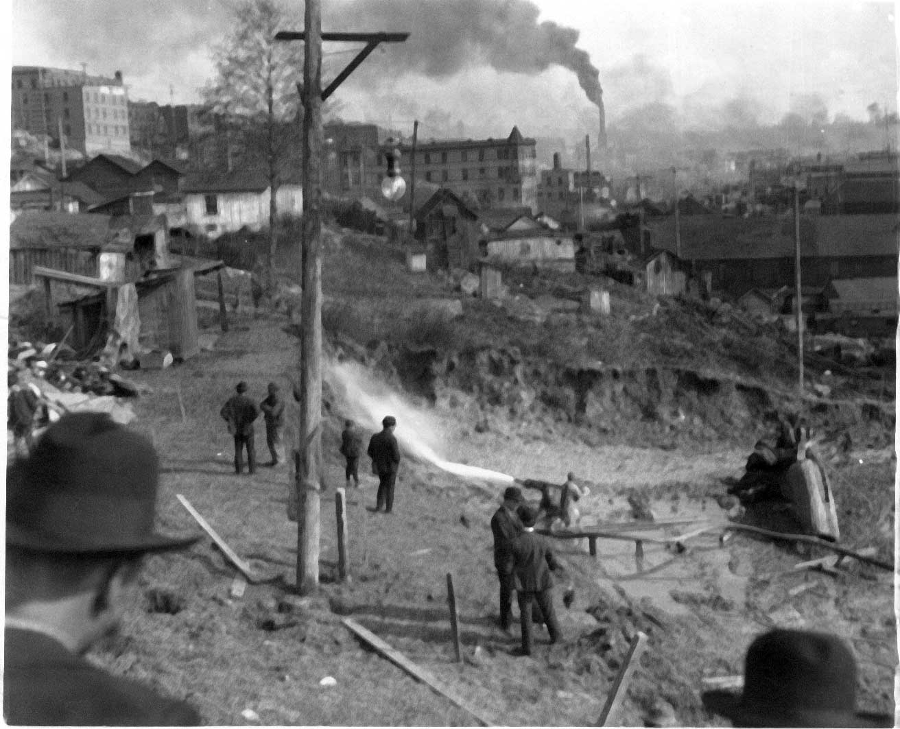 clip Virginia-RR-tunnel-excav-03-WEB July 18, 2015 1312 × 1063 Seattle Now & Then: Fire Below the Market 1903 excavation of the bluff below Virginia Street for the north rortal of the railroad tunnel.