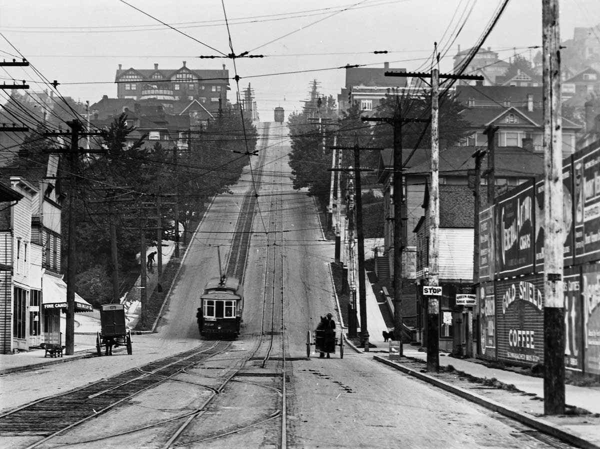Counterbalance-lk-n.-WEB August 2, 2015 1200 × 897 Seattle Now & Then: The Bagley Mansion Looking north up the Queen Anne Avenue Counterbalance from Mercer Street. (Courtesy, Lawton Gowey)
