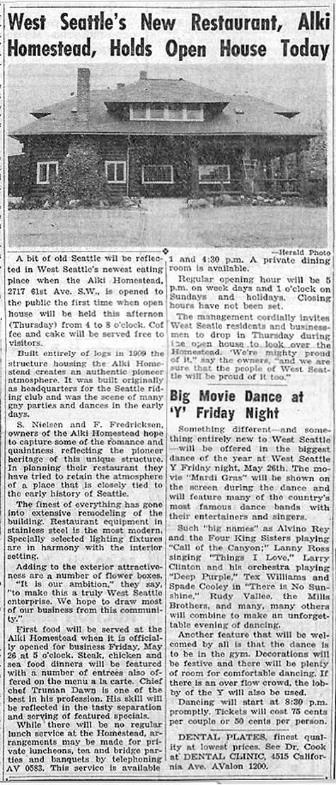 x West-Seattle-Herald,-June-25,-1950-WEB August 30, 2015 475 × 1111 Seattle Now & Then: Return of the Homestead The West Seattle Herald’s coverage of the Alki Homestead’s opening, published on June 25, 1950. CLICK CLICK to ENLARGE
