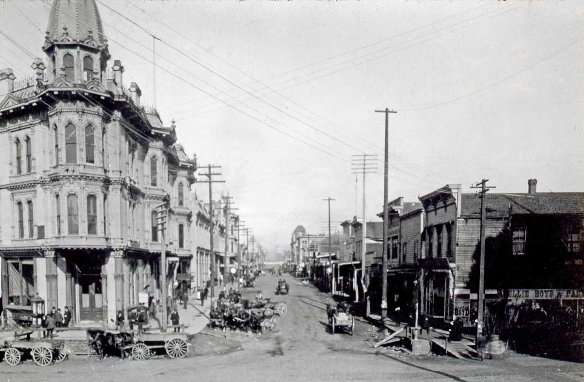 Front-st-lk-n-over-Yesler-ca-1887-web October 11, 2015 1200 × 784 Seattle Now & Then: Mill Street at Pioneer Place Looking north across Mill Street (Yesler Way) from the frame box that once housed Kellog’s drug store on the main floor and, for a few months, the Sammis photography studio upstairs. [Courtesy, Lawton Gowey]