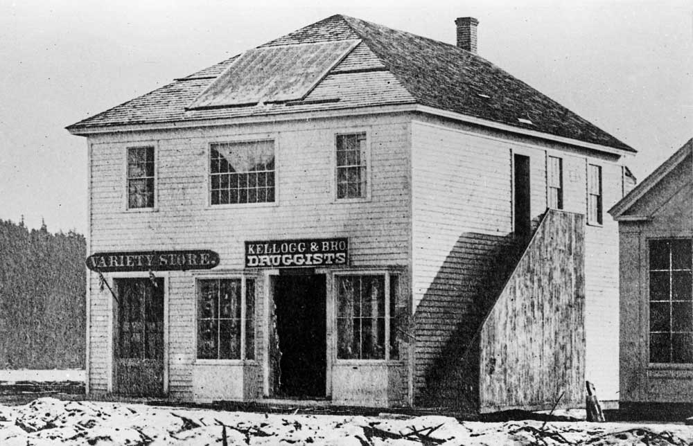 Sammis’ recording of the box that held his upstairs studio (note the skylight for studio work) and his landlord druggist Kellogg’s shop at the sidewalk. The stairway at the alley is still intact here in 1865-66. (Courtesy, UW Libraries, Special Collections.)