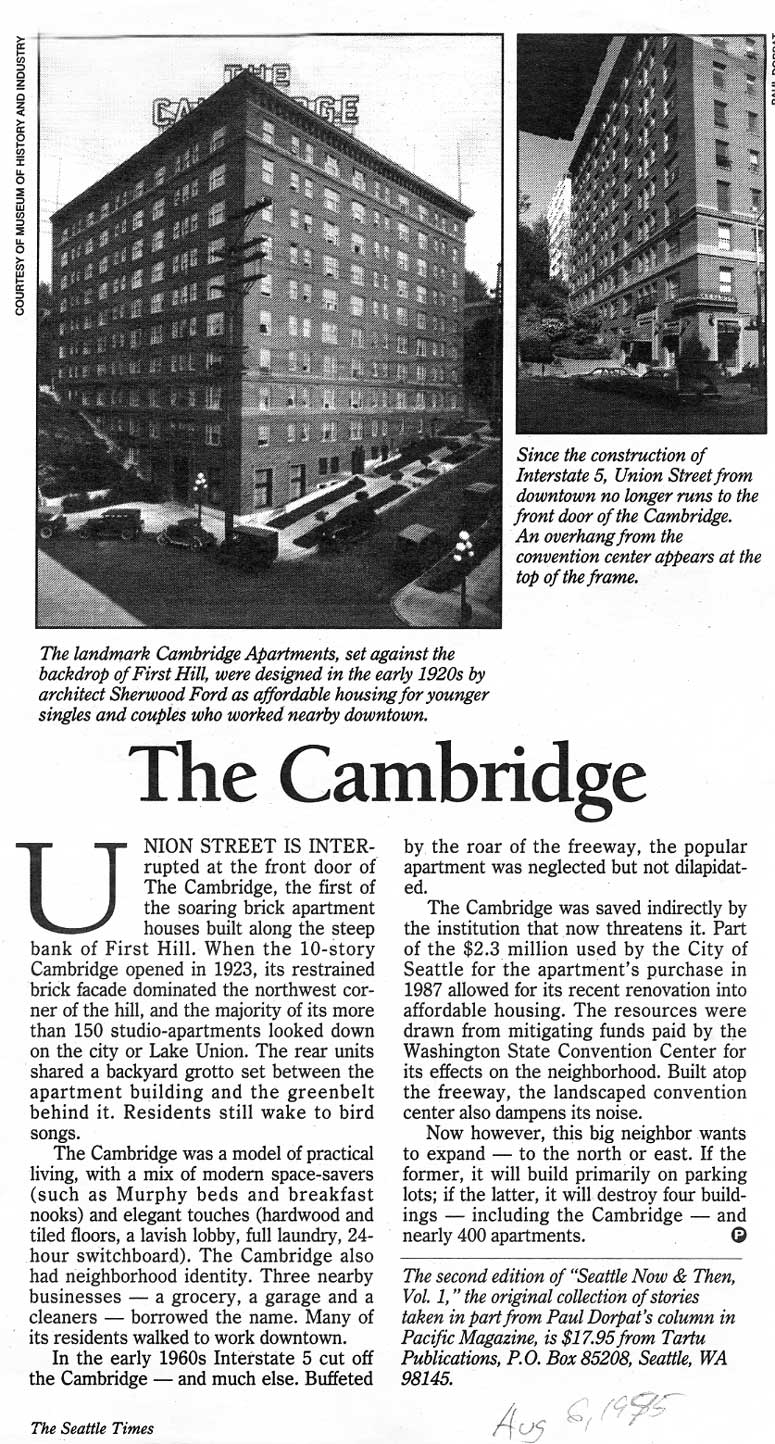 clip-Cambridge-apts-8-6-1995-WEB- October 17, 2015 775 × 1444 Seattle Now & Then: A View from the Cambridge Hotel First appeared in Pacific, August 6, 1995.