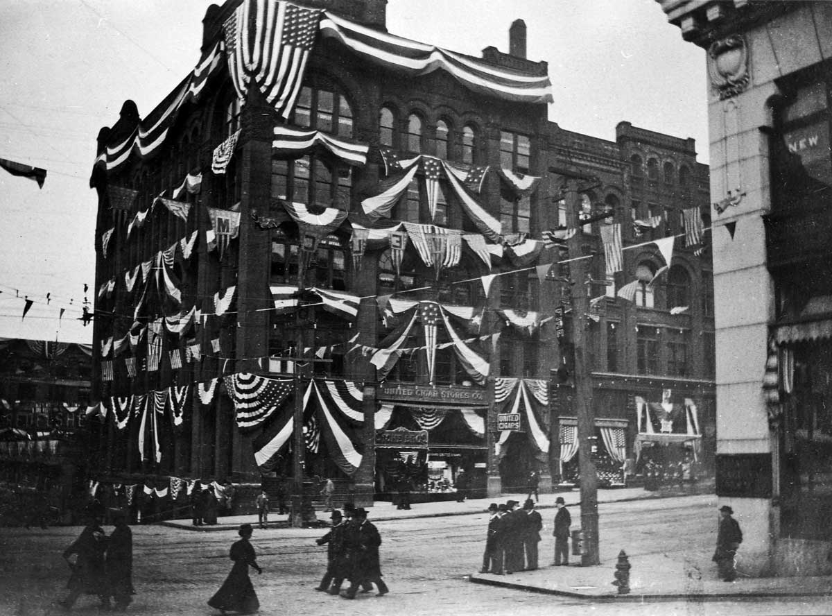 HALLER BLDG 1908-bunting-WEB December 6, 2015 1200 × 888 Seattle Now & Then: The Epler Block The Haller Building at the northwest corner of Columbia and Second decorated for the 1908 visit of the Great White Fleet.