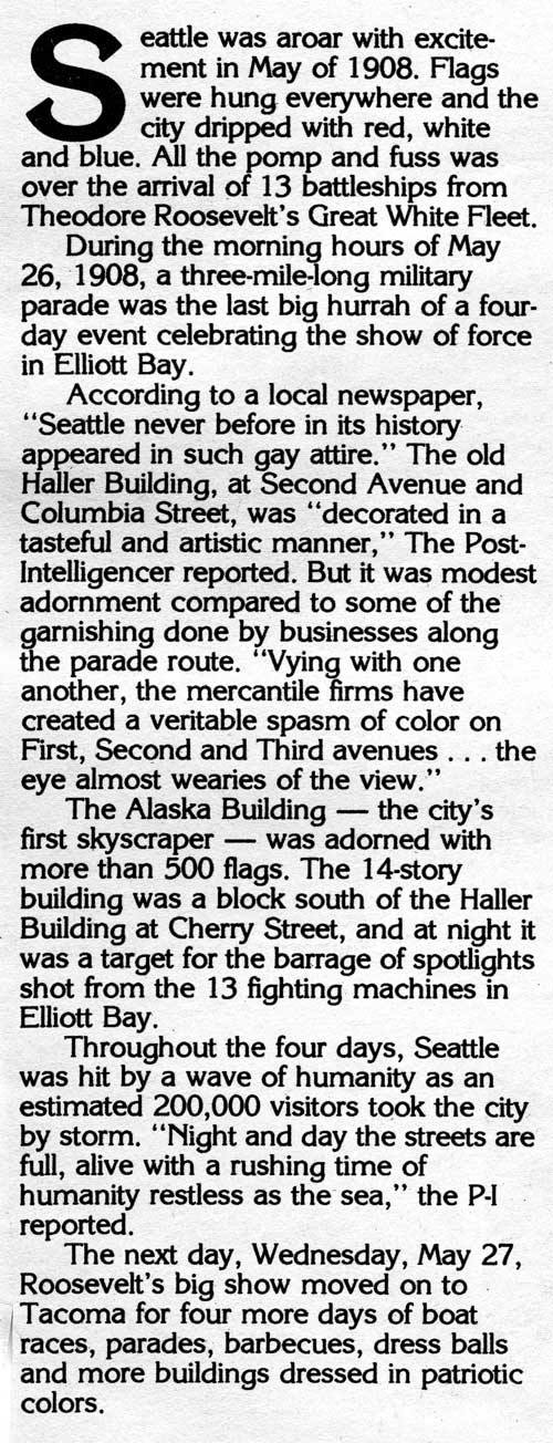 Haller-Bunting-1908-WEB December 6, 2015 500 × 1304 Seattle Now & Then: The Epler Block The Haller Building at the northwest corner of Columbia and Second decorated for the 1908 visit of the Great White Fleet.