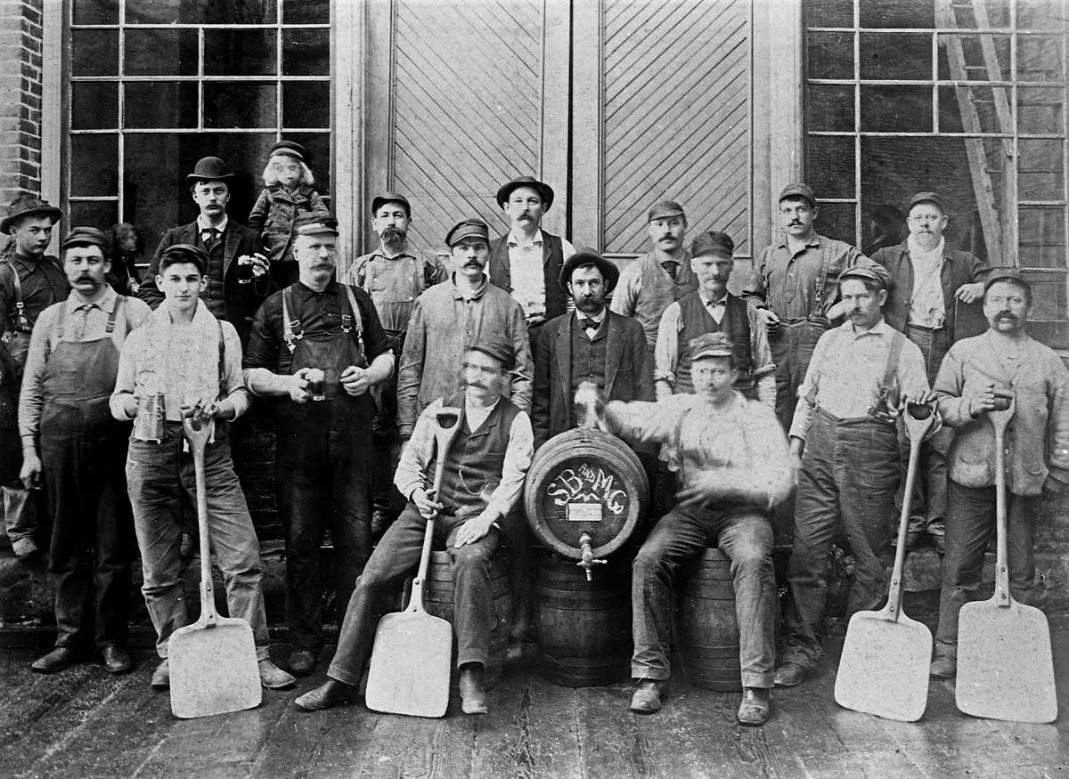 1.-Rainier-brewery-works-with-shovelsweb March 6, 2016 1200 × 875 Seattle Now & Then: Albert Braun’s Brewery in Georgetown One of the millions of barrels shipped and a few of the plants hundreds of employees.