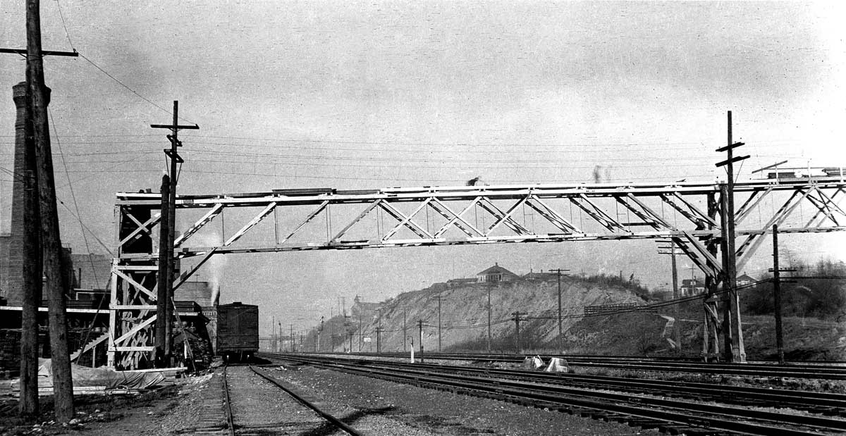 x-juneau-st-bridge-lk-n.-WEB March 19, 2016 1200 × 619 Seattle Now & Then: The Juneau Street Footbridge The pedestrian trestle still under construction, looking north along the tracks. (Courtesy, Seattle Municipal Archive)