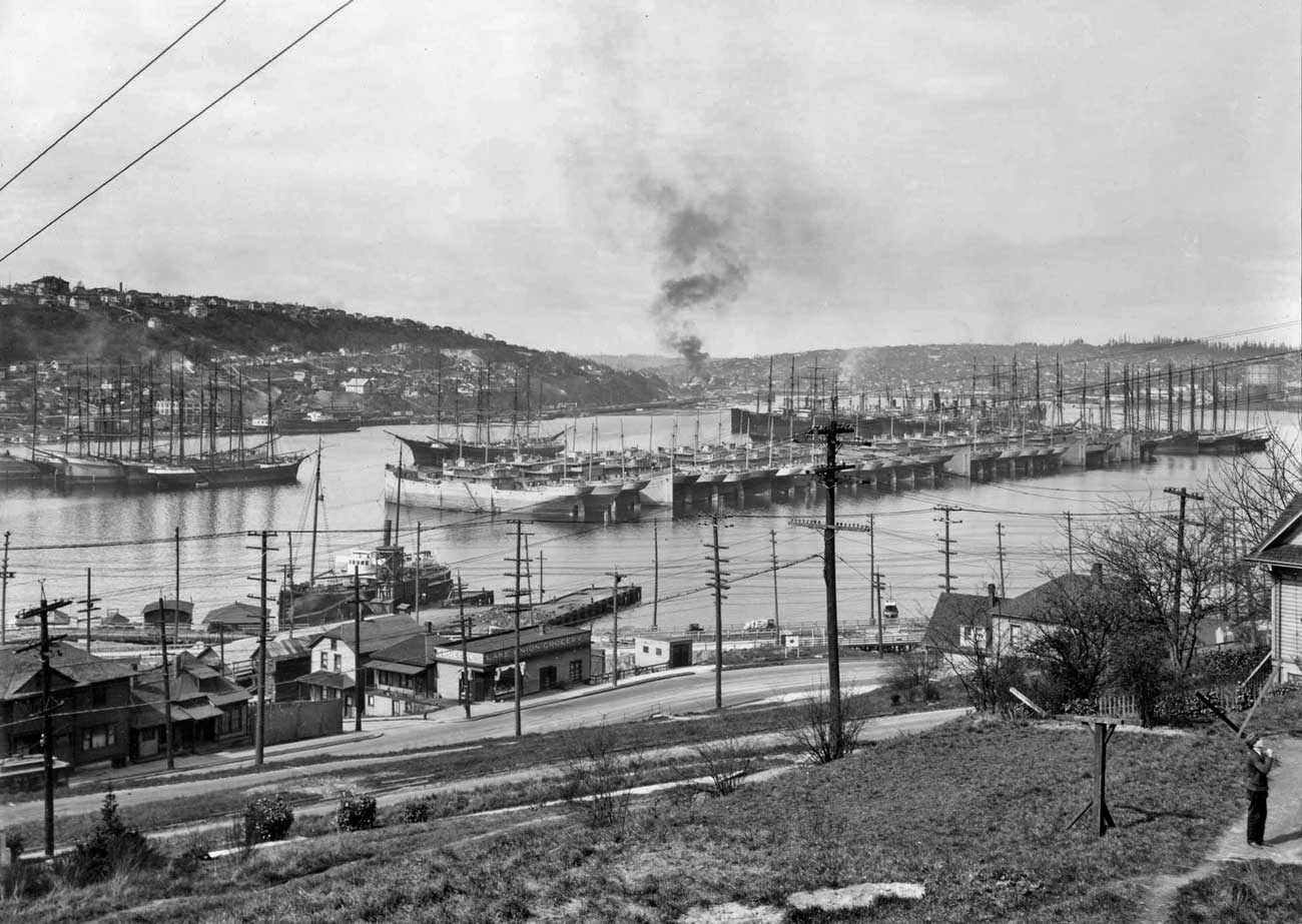 Woodrow-Wilson’s-wood-fleet-lake-union-83.10.385-web April 3, 2016 1300 × 923 Seattle Now & Then: Lake Union In our featured bay part of Woodrow Wilson’s Wooden Fleet of unused WW1 vessels parked in the fresh water of Lake Union. [Courtesy, MOHAI]