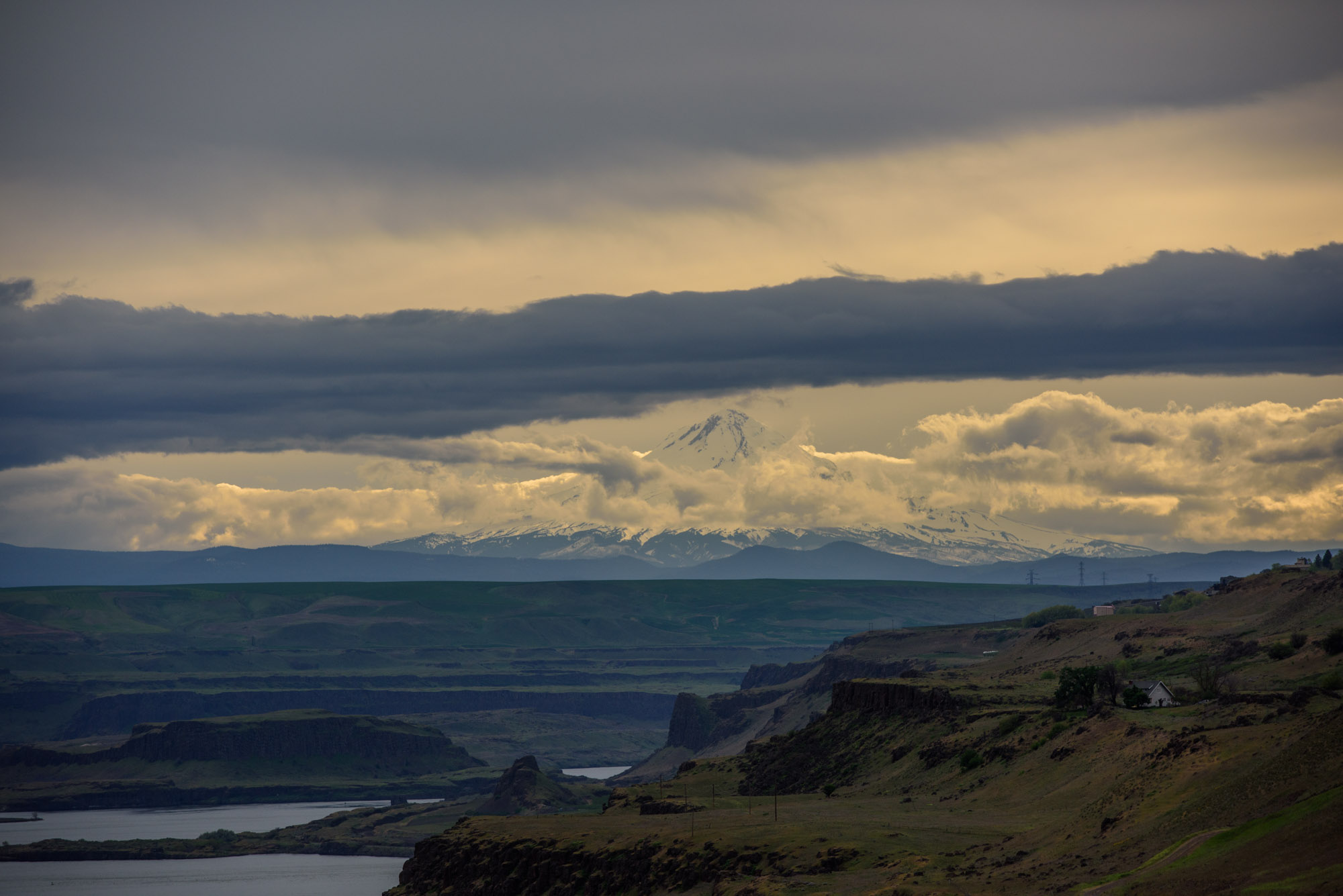 DSC_2421 April 16, 2016 2000 × 1335 Seattle Now & Then: James Street Cable Cars Mount Hood on a cloudy day, taken from Sam Hill’s Maryhill.