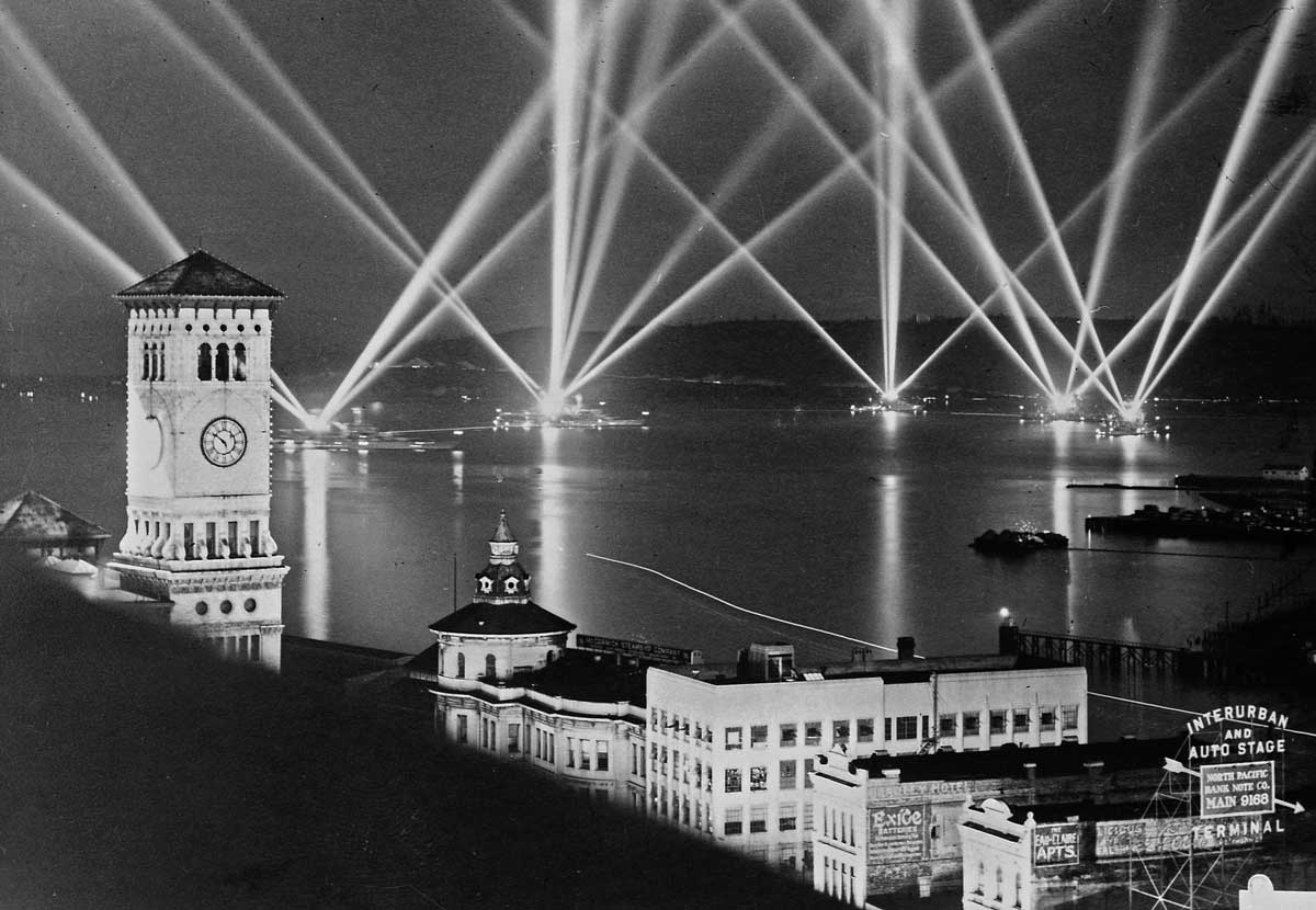 trol Tacoma-city-hall-&-NP-Bldge-w-fleet-spotlights-WEB April 24, 2016 1200 × 830 Seattle Now & Then: The Great White Fleet, 1908 Tacoma light show.