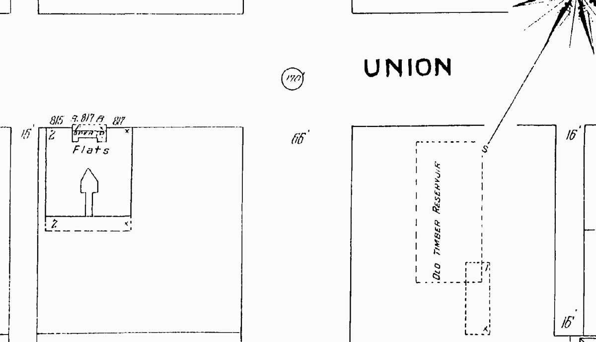 1905-Sanborn-Old-Timber-Reservoir-9-&-Union-GRAB-web June 5, 2016 1200 × 690 Seattle Now & Then: Florists’ Row at 9th & Union Ninth Avenue runs up through the middle of this detail from the 1904-5 Sanborn Real Estate Map, which also gives an outline to the