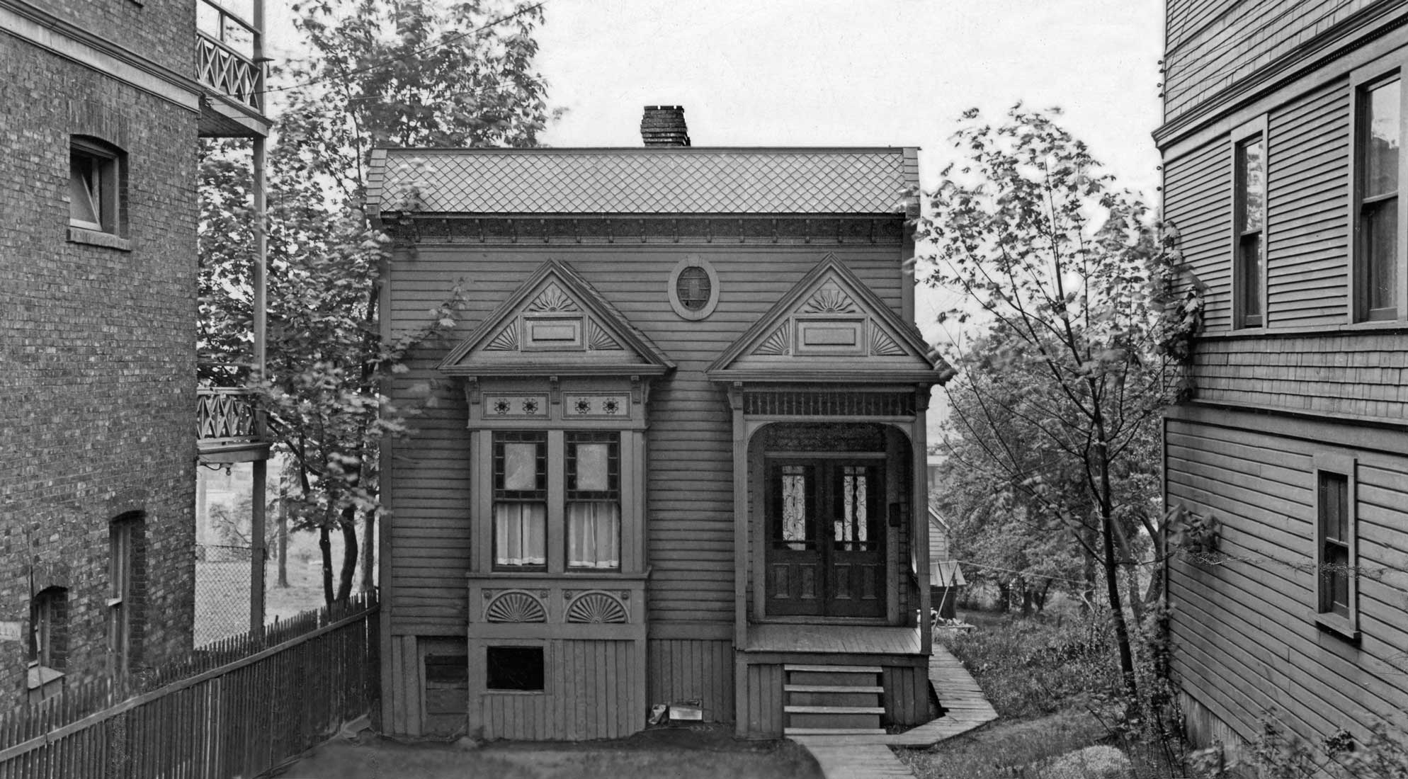 615-Eastlake-THEN-mr June 25, 2016 1988 × 1100 Seattle Now & Then: An Eastlake Cutie THEN: A carpenter’s jewel with Victorian ornaments recorded by a tax assessor’s photographer in 1936, nestles at 615 Eastlake beside the surviving Jensen Apartments, aka the O’Donnell Building, on the left. (Courtesy Stan Unger)