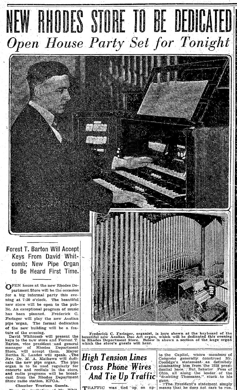 x-ST-DEC-7,-27-New-Rhodes-dedicated-WEB July 3, 2016 785 × 1289 Seattle Now & Then: The Rhodes Mansion (with 2 Electric Cars) Times clip for the New Rhodes and its lobby organ. December 7, 1927.