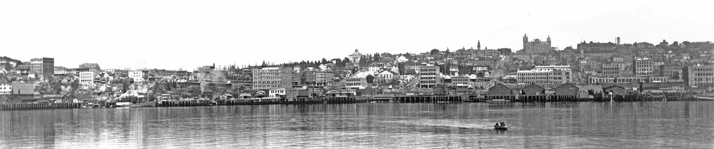 x-haynes-seattle-wafrnt-off-shore-90-web September 18, 2016 1400 × 292 Seattle Now & Then: Yesler’s Wharf, 1891 Another Haynes view, this one from some vessel off shore of Marion Street. (It lines up with the photographer’s prospect.) Notes Denny Hill on the far left.