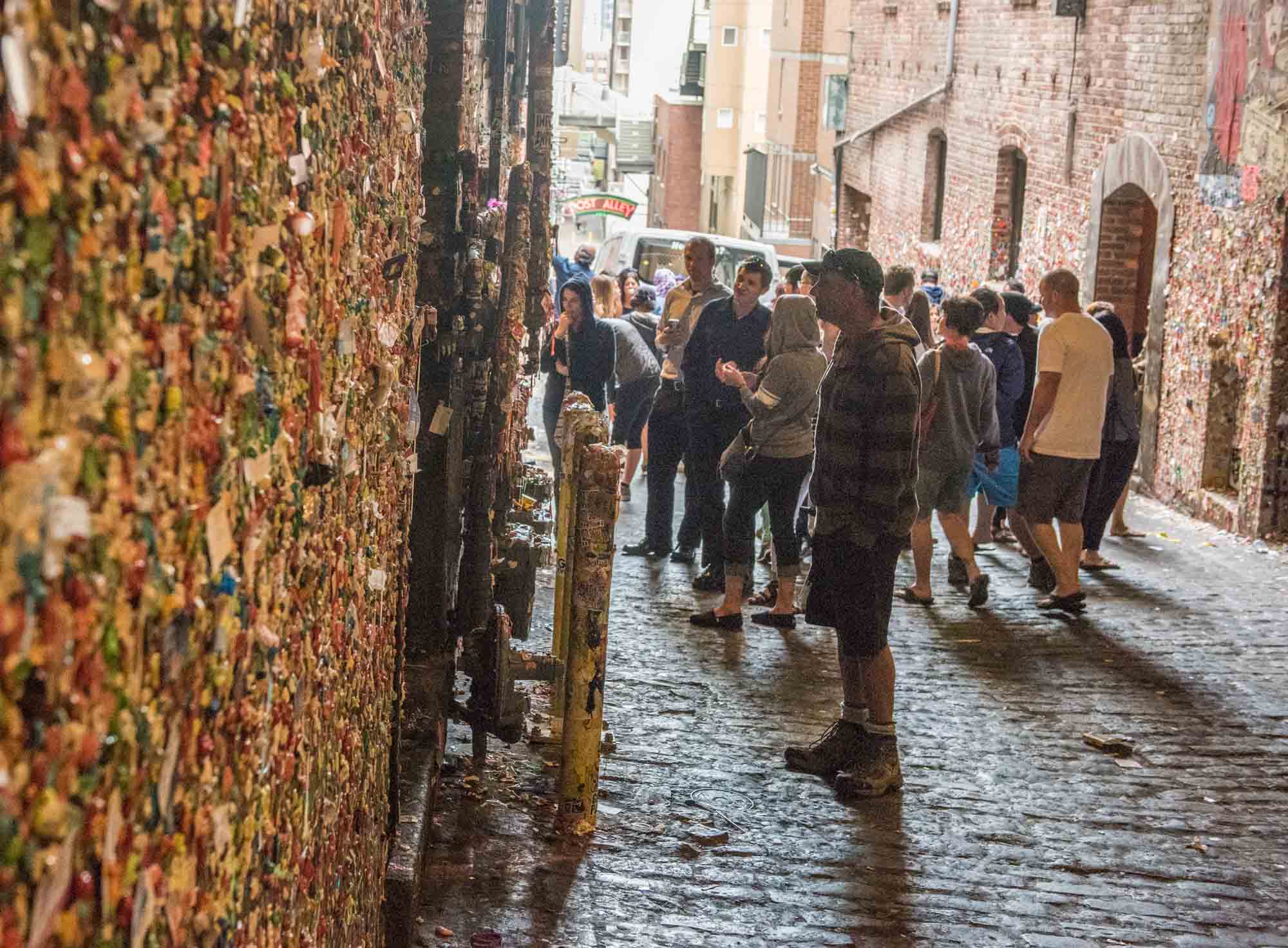 Gum wall crowds throng